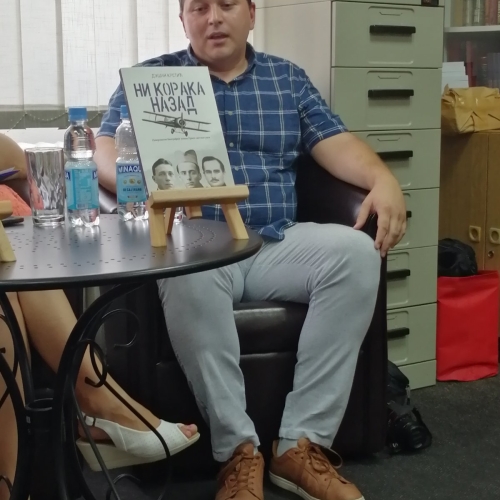 У оквиру Културног лета у нашем Архиву представљена је књига "Ни корака назад" Душана Крстића. Ово изузетно дело доноси романсиране биографије три српска јунака Игњата Кирхнера, Петра Мариновића и Страхиње Бана Нушића, који су на различите наине показали како изгледа борити се за своју земљу по цену губитка сопственог живота. Крстић доноси приче о њима питко, пријемчиво, занимљиво тако да се лако може склопити мозаик портрета поменуте тројице.