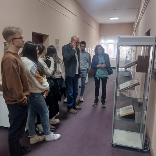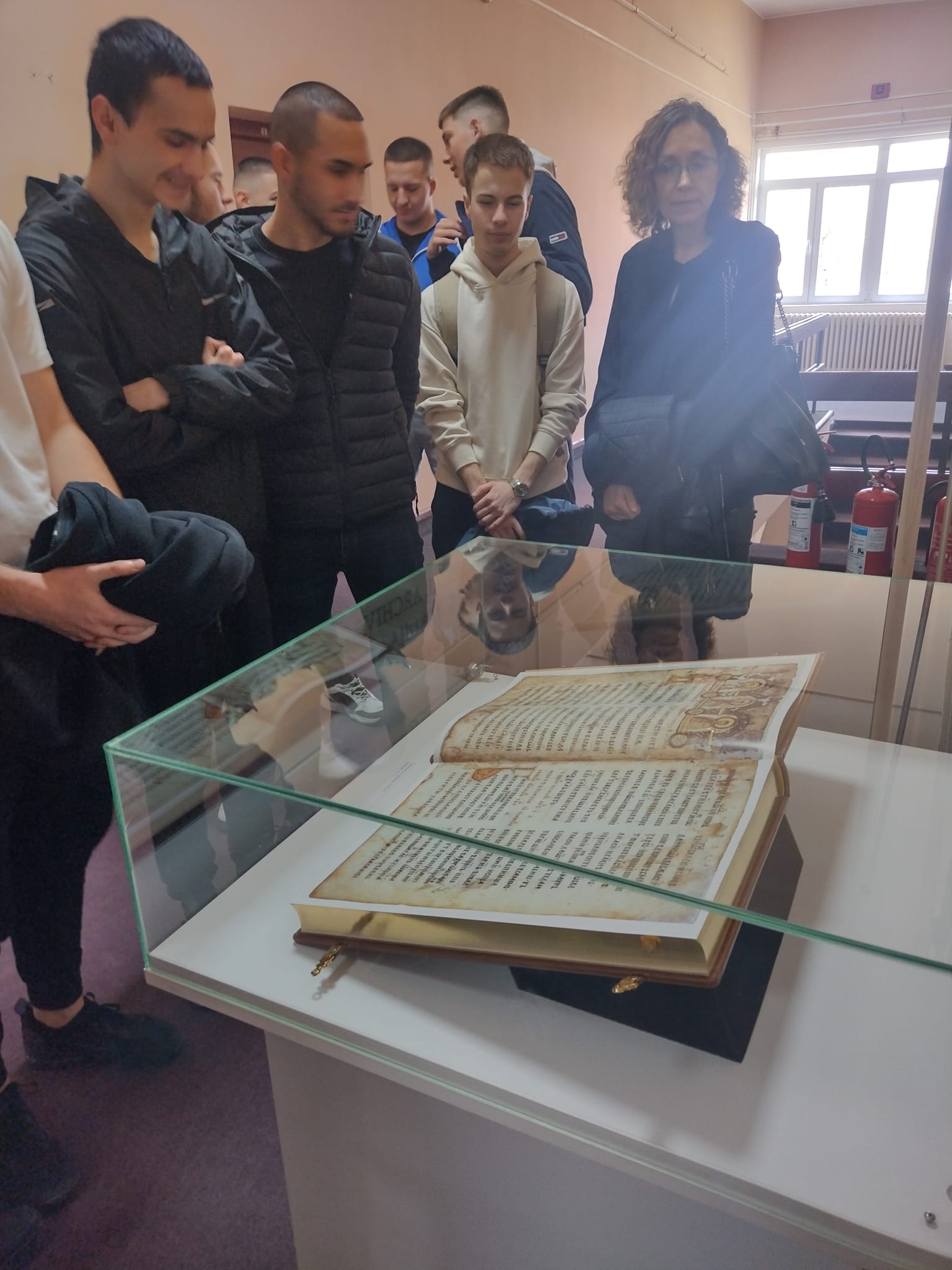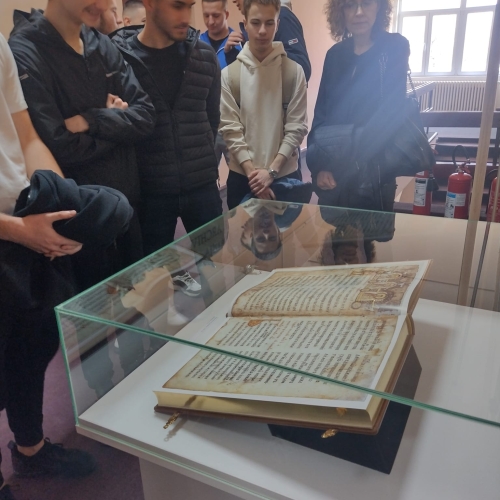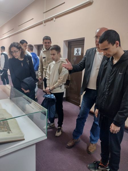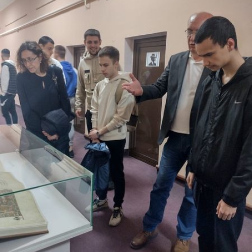 У Историјском архиву Шумадије Крагујевац, два одељења ученика Прве техничке школе посетили су Архив са циљем да погледају изложбу ,,Средњовековни рукописи и штампане књиге ( фототипскa издања)".